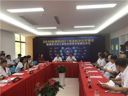在当天上午举行的2019自闭症MDT精准医学诊疗峰会上,中外儿科专家对南京天佑儿童医院一位孤独症患儿小天(化名)进行联合会诊。本次MDT精准医学诊疗峰会云集了众多中外医学大咖,包括国务院特殊津贴专家、广州中医药大学附属南海妇产儿童医院首席专家、博士生导师、“中国脑瘫治疗第一人”刘振寰,美国医学科学院国际院士、南京医科大学康复医学系教授励建安,美国威斯康星州立医学院儿科专家萨里卡·瓦利亚,首都医科大学附属北京安贞医院儿科主任医师邓腾兰,中国康复研究中心脑瘫康复科主任医师李燕春,北京中日友好医院儿科主任医师赖宏及首都儿研所附属儿童医院普外科专家张军等知名儿科专家。